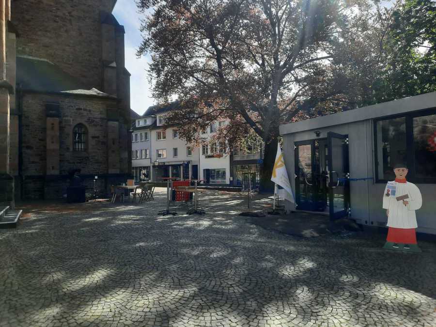 Bei sehr kaltem, aber sonnigem Wetter trafen wir uns um 13:30 Uhr, um uns für den Zug aufzustellen. Um die Zeit bis zum Zugbeginn zu überbrücken, hatte Vincent noch eine Überraschung für die Gruppe: einen Messdiener-Karnevalssong mit passendem Tanz. Der Song war an diesem Tag während des Zuges einige Male zu hören.